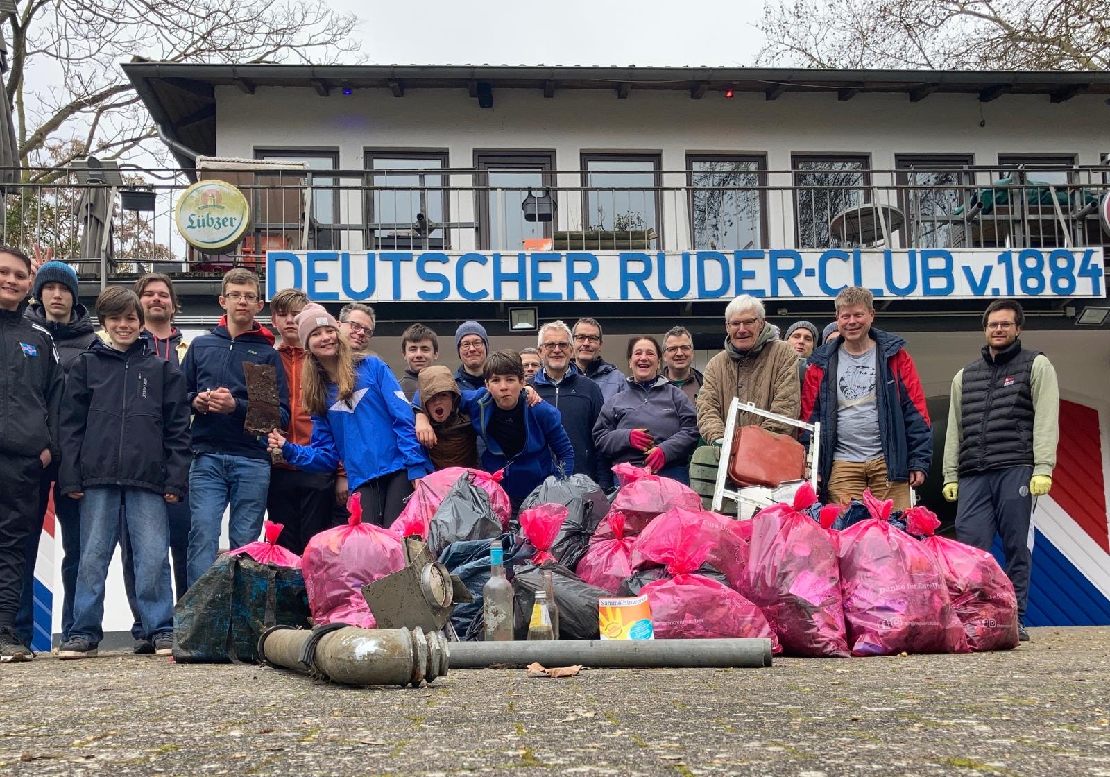 Der große Abfallsammeltag „Hannover ist putzmunter“ an der Ihme war ein voller Erfolg: Am vergangenen Sonnabend (21. März) haben wir gemeinsam mit knapp 20 engagierten Helfer*innen am etablierten Umweltprojekt „Hannover ist putzmunter“ von aha und der Landeshauptstadt Hannover teilgenommen. Besonders stolz sind wir auf unsere Kindergruppe, die noch vor ihrer Abfahrt ins Trainingslager den DRC und das angrenzende Ruderrevier gründlich aufgeräumt hat. Zusammen mit weiteren Mitgliedern – Groß und Klein, Jung und Alt – wurde der Flussabschnitt der Ihme zwischen Stadionbrücke und schwarzem Bären von Müll befreit. Am Ende der Aktion konnten wir beeindruckende 45 prall gefüllte Müllsäcke, eine Heizungstherme sowie Stühle und Räder zählen.