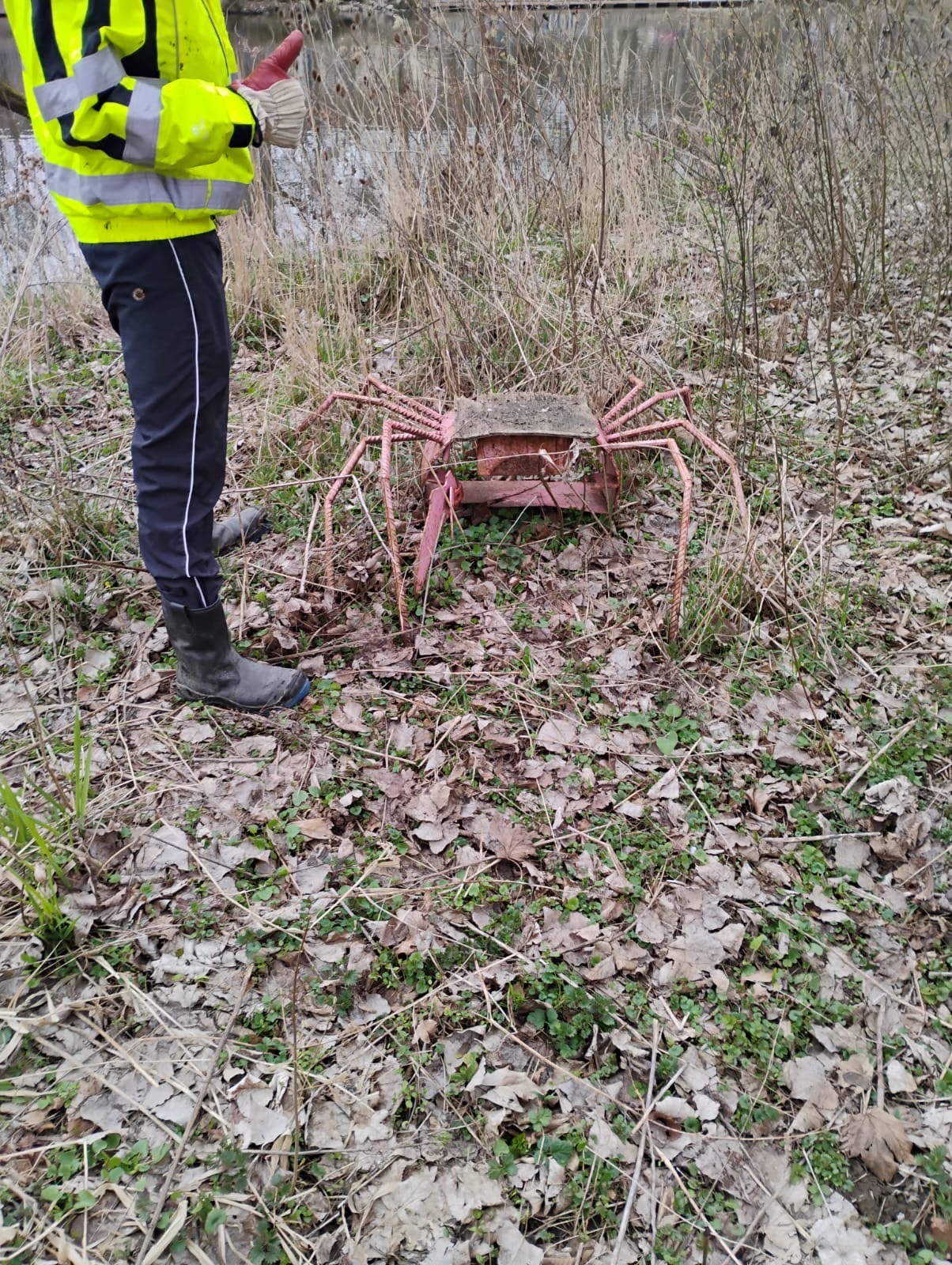 Neben einem deutlich saubereren Fluss und Ufer über den wir uns freuen können, könnt Ihr nachfolgend noch einen Eindruck von der Sammelaktion erhalten: Ist das Kunst oder kann das weg? – Diese große Spinne (unten) fühlt sich weiterhin an den Ufern der Ihme wohl!