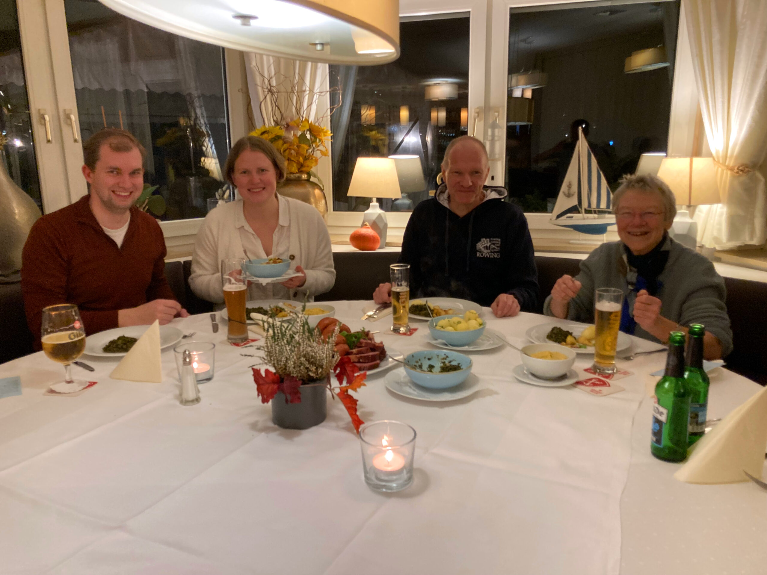 Hunger haben wir am Ende trotzdem (wäre ja schade ums Essen) und so begeben wir uns nach dem Rudern per Automobil nach Seelze. Schon vor 18 Uhr sitzen RVL, WSV und DRC mit den Gabeln in der Hand vor frisch gezapften Bieren und wenig später werden köstlich duftende und dampfende Schüsseln kredenzt, die wir ausgehungert zu uns ziehen, um die Teller vollzuschaufeln. Zufrieden mümmelnd wird über Wirtschaft, Politik und – natürlich – Rudern philosophiert und auch wenn die Kilometer in diesem Jahr nicht für einen Efa-Eintrag als Wanderfahrt gereicht haben war es wieder einmal ein wunderbar sonniger Nachmittag auf dem Wasser.