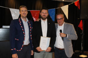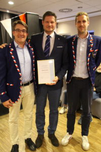 25 Jahre Mitglied: Sebastian Dziuba (Mitte) mit DRC-Präsident Julius Peschel (r.) und Förderkreis-Boss Tobias Cantz, der die Laudatio hielt.