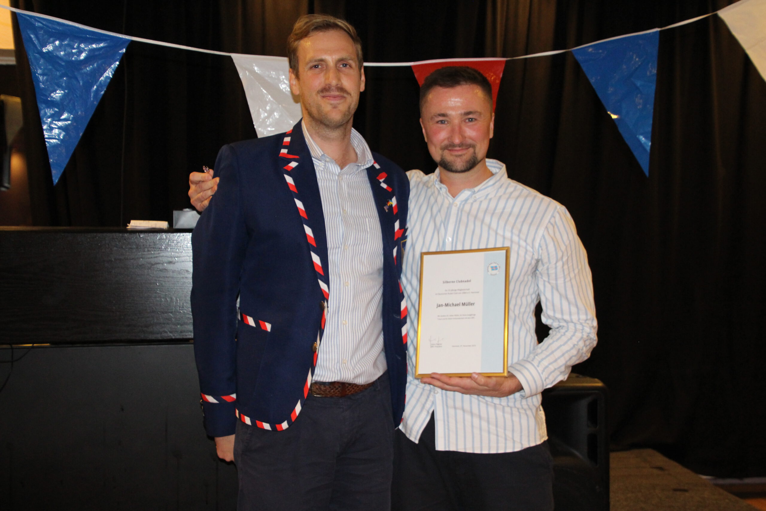 Noch einmal 25 Jahre Mitglied: Jan Michael „Mühle“ Müller, der seine Familie zur Feier mitgebracht hatte, mit Julius Peschel.