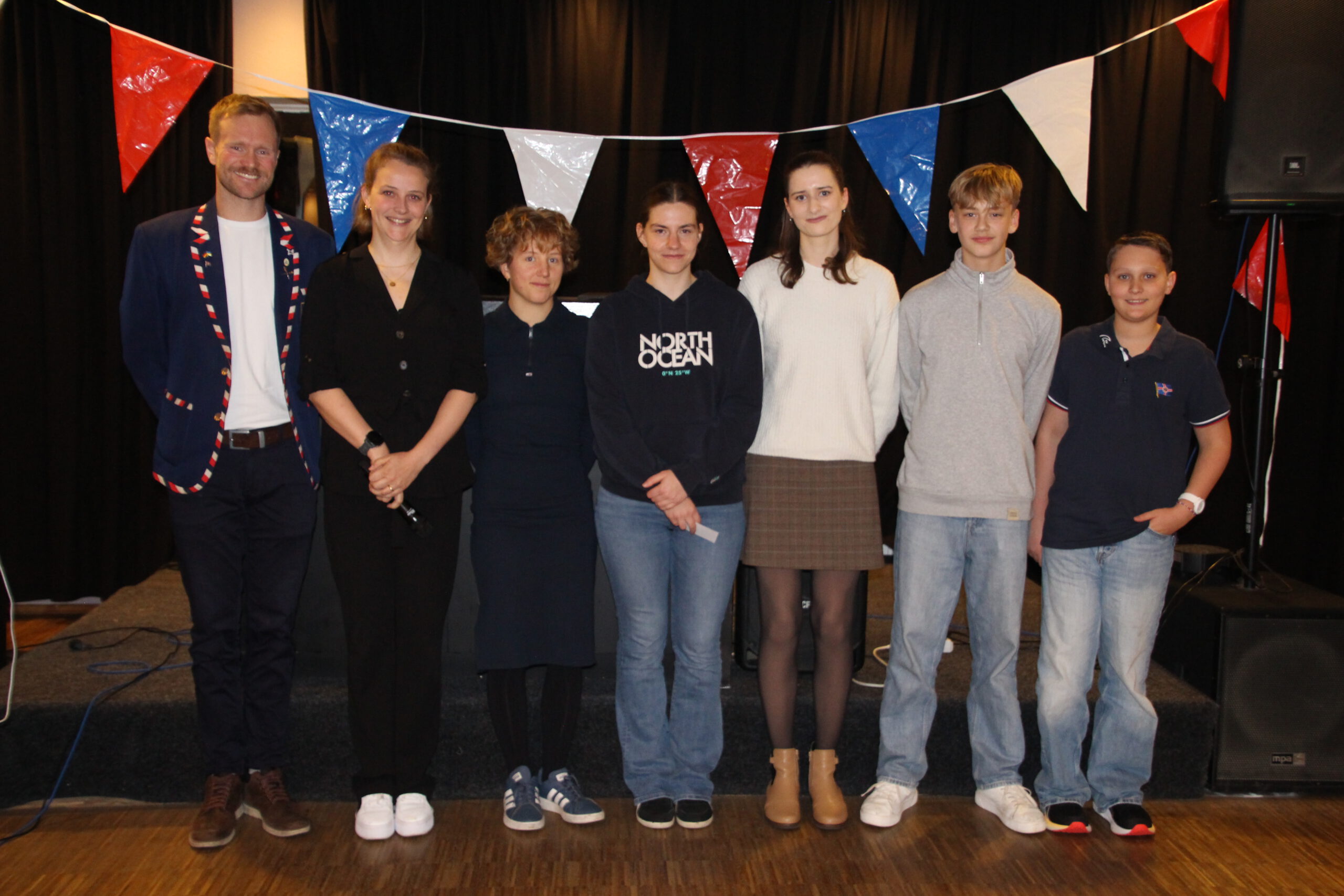 Eine kleine Abordnung unsere jüngsten Nachwuchsaktiven Henri Janson und Felix Podworny (v.r.) mit ihren Trainerinnen Gesa Brackhahn, Alexandra Kasterina und Sina Stumpf neben unseren beiden Sportvorsitzenden Johanna Niederbröker und Cornelius „Kurby“ Dietrich.