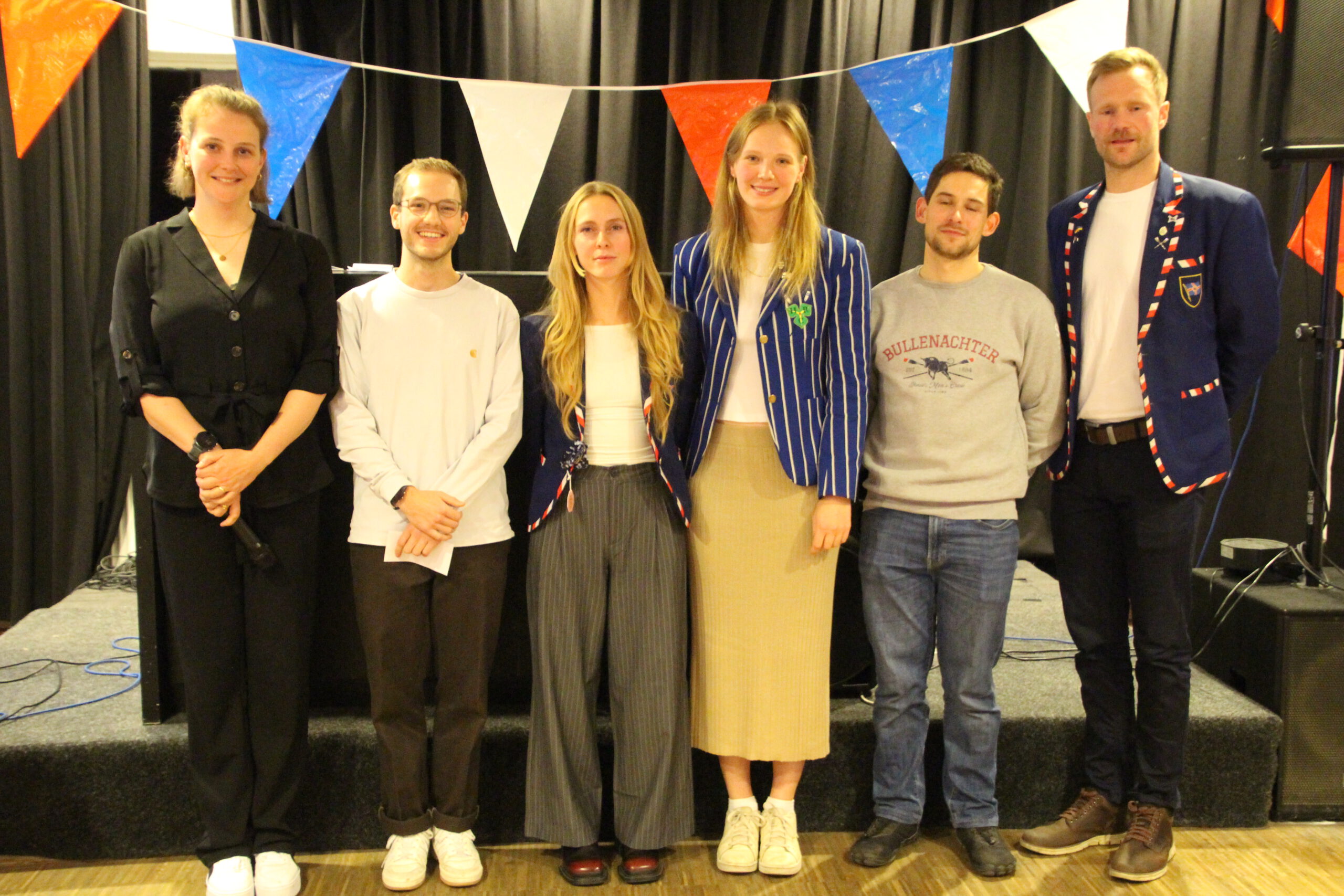 International erfolgreich gestartete Uni-Ruderer: Niko Trittschanke, Jana Hülsmeier, Janka Kirstein (HRC) und Philipp Schiefer eingerahmt durch den DRC-Sportvorstand.