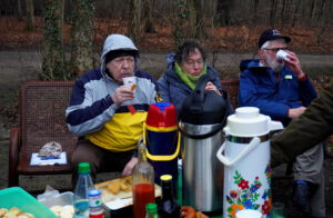 Nach gut zwei Stunden war es dann geschafft: Die Strecke war absolviert, die Teilnehmer trotz eher milder Temperaturen etwas durchgefroren und alle Kugeln wieder bei ihrem Besitzer Christian Bartels. Jeder Wurf war von den jeweiligen Gruppen mehr oder weniger akribisch genau protokolliert worden, so dass man zur Auswertung schreiten konnte. Das Team „Rot“ mit Gerdchen, Knispel, Erika, Katharina und Günter landete auf dem letzten Platz und ist damit Ausrichter des Boßelturniers 2024.