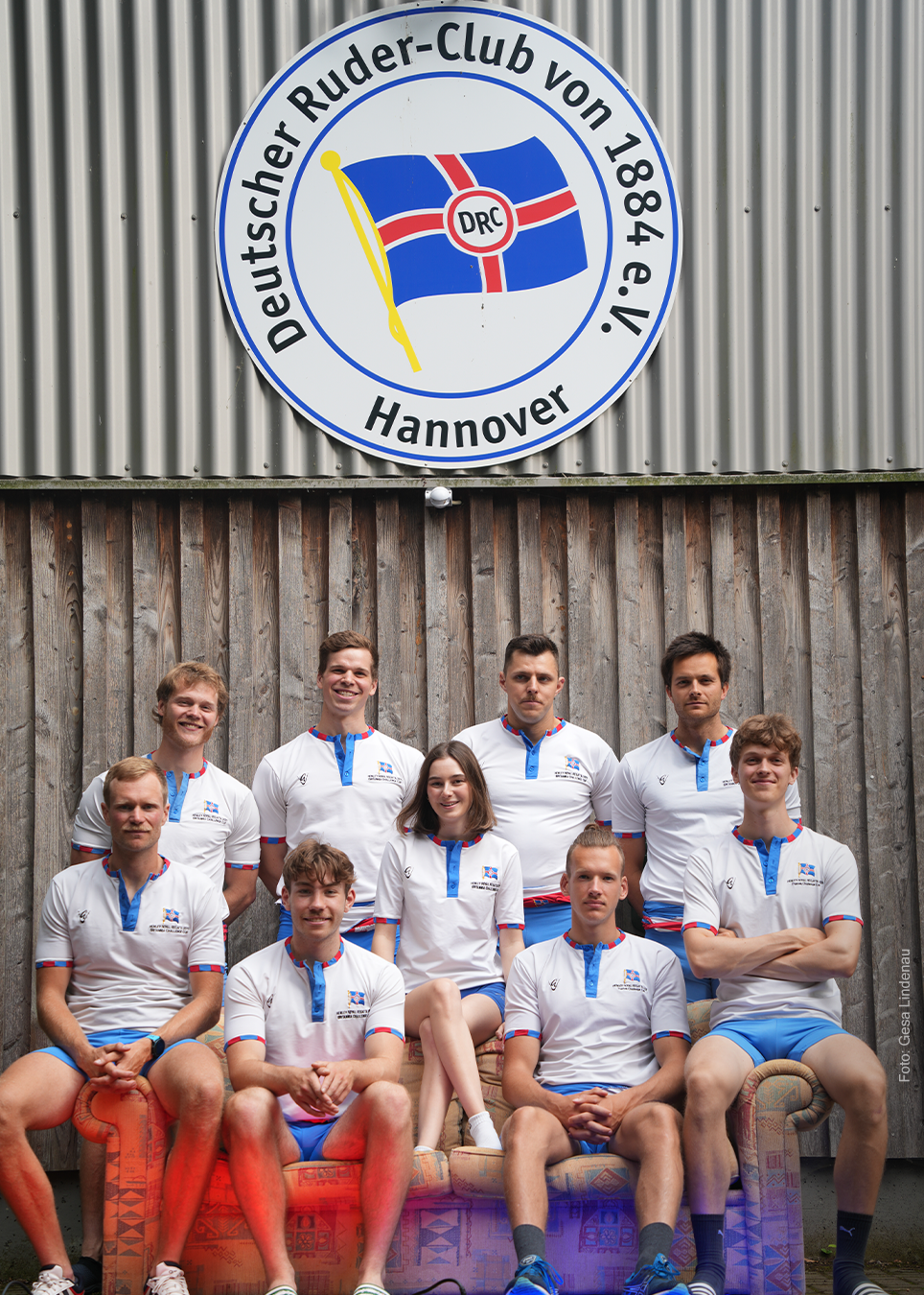 Wieder ist ein DRC-Achter am Start bei der traditionsreichen Royal Henley Regatta: Ab morgen legen sich diese acht jungen Männer auf der Themse in die Riemen – im Zentrum der Aufmerksamkeit hält allerdings unsere Steuerfrau Coralie Hesse alle Zügel fest in der Hand. Und die Jungs hören – wie beim Foto-Shooting oben zu sehen – auch beim Rudern besser gut zu, was ihre 20-jährige Lenkerin ihnen auf den Strecke in Henley über die Distanz von einer britischen Meile und 550 Yards so alles zuruft.