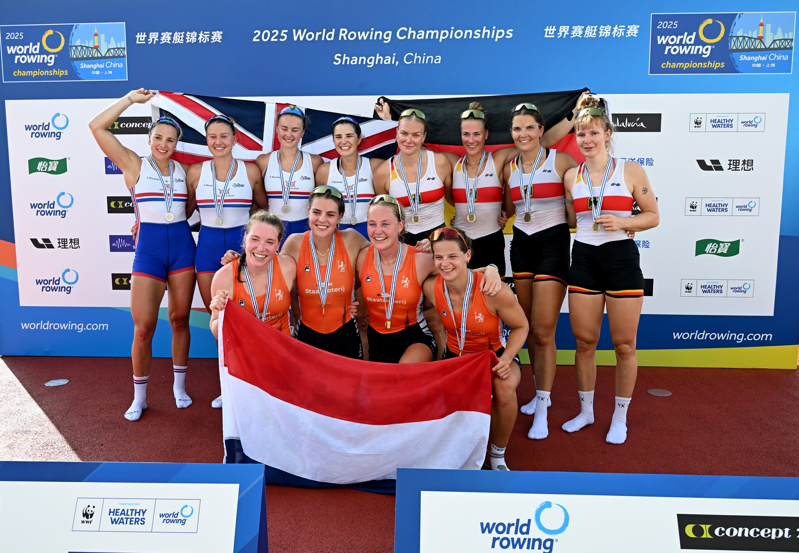 Für Frauke bedeutet das Edelmetall in Shanghai auch einen großen persönlichen Erfolg: Nach zahlreichen sehr guten internationalen Platzierungen, EM-Gold 2017 im Doppelvierer, ihrem Olympia-Ersatzticket in Paris 2024, EM-Silber und dem Weltcup-Gesamtsieg mit dem Doppelvierer dieses Jahr gewann sie in der chinesischen Metropole die erste WM-Medaille ihrer Karriere. Dementsprechend jubelte unsere 30-Jährige Top-Skullerin: „Meine erste WM-Medaille – geil!“, so Frauke, die das Rennen wie folgt beurteilt: „Unser Ziel war eine Medaille, das haben wir geschafft. Aber wir wollten eigentlich weiter nach vorne. Aber so ist das halt“, resümiert sie. „Wir sind am Anfang des Olympia-Zyklus“. Fraukes großes Ziel sind die Spiele in Los Angeles 2028. DRV-Trainer Marcin Witkowski: „Glückwunsch an die Mannschaft: Wir gehören zur Weltspitze.“