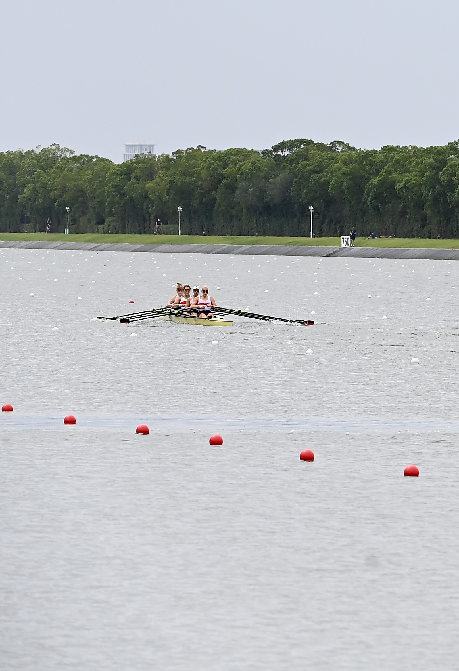 Erschwerter Kampf um die Medaillen? Der Super-Taifun „Ragasa“ streift mit Regen und Windböen durch Fernost – und auch den Austragungsort der Ruder-WM, wirbelt in Shanghai den Zeitplan durcheinander. Ob von Rennverlegungen möglicherweise auch das morgige Finale des Doppelvierers mit unserer Top-Ruderin Frauke Hundeling (Donnerstag, 8:58 Uhr MESZ) betroffen wird, ist noch offen. Denkbar ist auch eine andere Bahnverteilung als geplant. Nach dem bisherigen Qualifikationsmodus starten im Finale die drei schnellsten Boote der Vorläufe und Favoritinnen aufs Edelmetall, die Teams aus Großbritannien, der Niederladen und das deutsche Quartett, unmittelbar nebeneinander auf den Mittelbahnen.