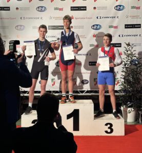 Mit zwei Bronzemedaillen und weiteren guten Platzierungen im Gepäck kehrte am Sonntag eine Auswahl unserer Junior*innen von der Hallen-Ergometer-DM in Essen-Kettwig zurück. Cara Sue Lüdemann ruderte in 7:43,0 min über die 2.000-Meter-Distanz auf den dritten Platz bei den Leichtgewichts-Juniorinnen in der Altersklasse der 17/18-Jährigen. Bei den jüngeren B-Junioren (15/16 Jahre) holte Sascha Lorenz über die 1.500 Meter lange Strecke ebenfalls Bronze in der Zeit von 5:06,0 min. Im selben Finale wurde Max Broermann Siebter in 5:10,2 min.