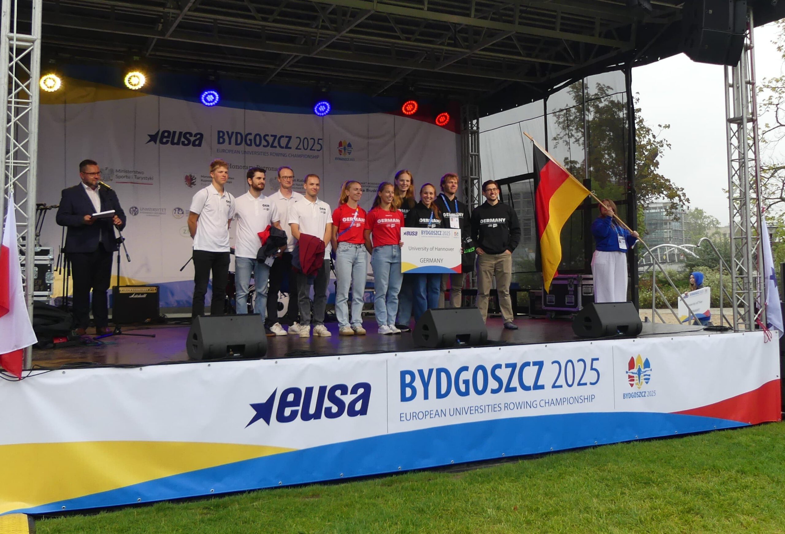 Ab heute starten die Wettkämpfe zur europäischen Hochschulmeisterschaft EUC 2025 in Bydgoszcz, Polen. Vom DRC mit dabei für die Wettkampfgemeinschaft Hannover (sportlicher Zusammenschluss aller hannoverschen Hochschulen) sind im leichten Doppelzweier Jana Hülsmeier mit ihrer Partnerin Yana Koval (Angaria), im Mixed-Doppelvierer Anna und Philipp Schiefer zusammen mit Jannik Menke und Janka Kirstein (beide HRC) und im (leichten) Männerdoppelvierer Niko Trittschanke zusammen mit Jannis Bestmann, Philipp Bischoff und Aron Kröhnert (alle Angaria). Für den Doppelzweier geht es heute in die Bahnverteilung, während die beiden Doppelvierer in den Vorläufen um die begehrten Plätze für das A-Finale kämpfen.